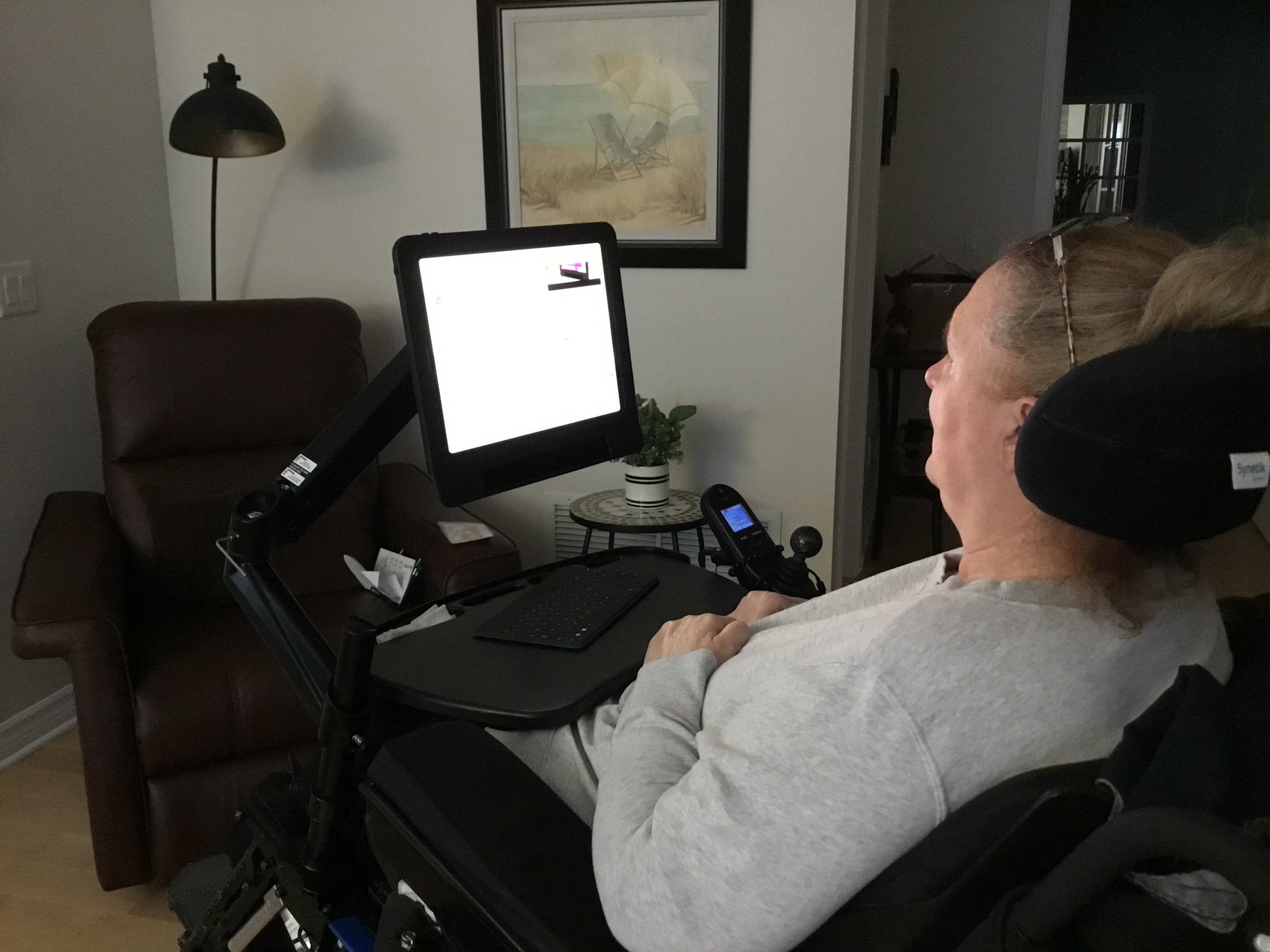 J’ai reçu mon nouvel appareil le 24 février. Il faut que je pratique assidûment pour être  capable d’écrire. Le port de lunettes et le moindre reflet de lumière extérieure rend le calibrage difficile. J’ai tendance à bouger la tête au lieu de seulement mes yeux.  Il faut être patient et pratiquer beaucoup. La patience n’est pas ma plus grande vertu mais je vous promets de faire l’impossible. J’y arriverai! La pandémie m’offre le moment idéal pour pratiquer inlassablement mon nouveau jouet.