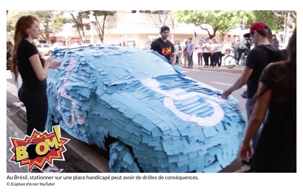Alors ma soeur c’est stationné en arrière du véhicule de la dame,un camion à klaxonné, il ne pouvait pas passer,ma soeur lui a montré la carte handicapé, le camionneur à levé son pouce