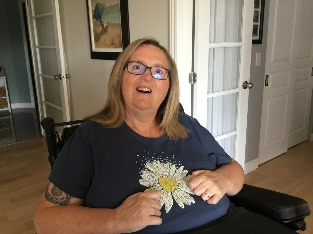 Vous ne savez pas combien il est compliqué d’habiller une personne en fauteuil roulant surtout si cette personne ne tient plus sur ses jambes. Il y a de multiples facteurs à prendre en considération notamment : La personne peut-elle aller à la salle de bain sans assistance? Peut-elle se tenir brièvement debout pour de courts instants? Doit-elle passer de longues heures dans son fauteuil? Est-elle menue ou fait-elle de l’embonpoint? Vous comprendrez que nous privilégions les vêtements amples et confortables pour faciliter notre confort au quotidien. Si la personne ne peut pas se tenir debout, on doit alors l’habiller au lit. Ce n’est pas évident de revêtir une paire de jeans à quelqu’un qui est mou comme de la guenille! L’aidant doit utiliser les bonnes techniques pour éviter les blessures. Personnellement, je fais de l’embonpoint et mes membres sont plus lourds et difficiles à manipuler. Avec la SLA, les articulations deviennent rigides empêchant d’enfiler aisément les vêtements. Ma mobilité est restreinte.