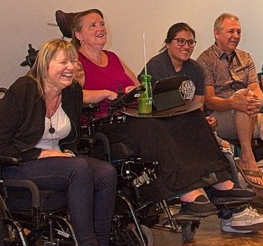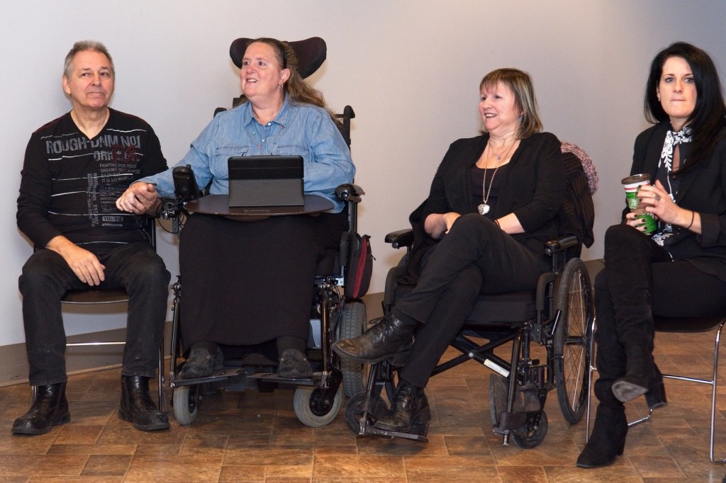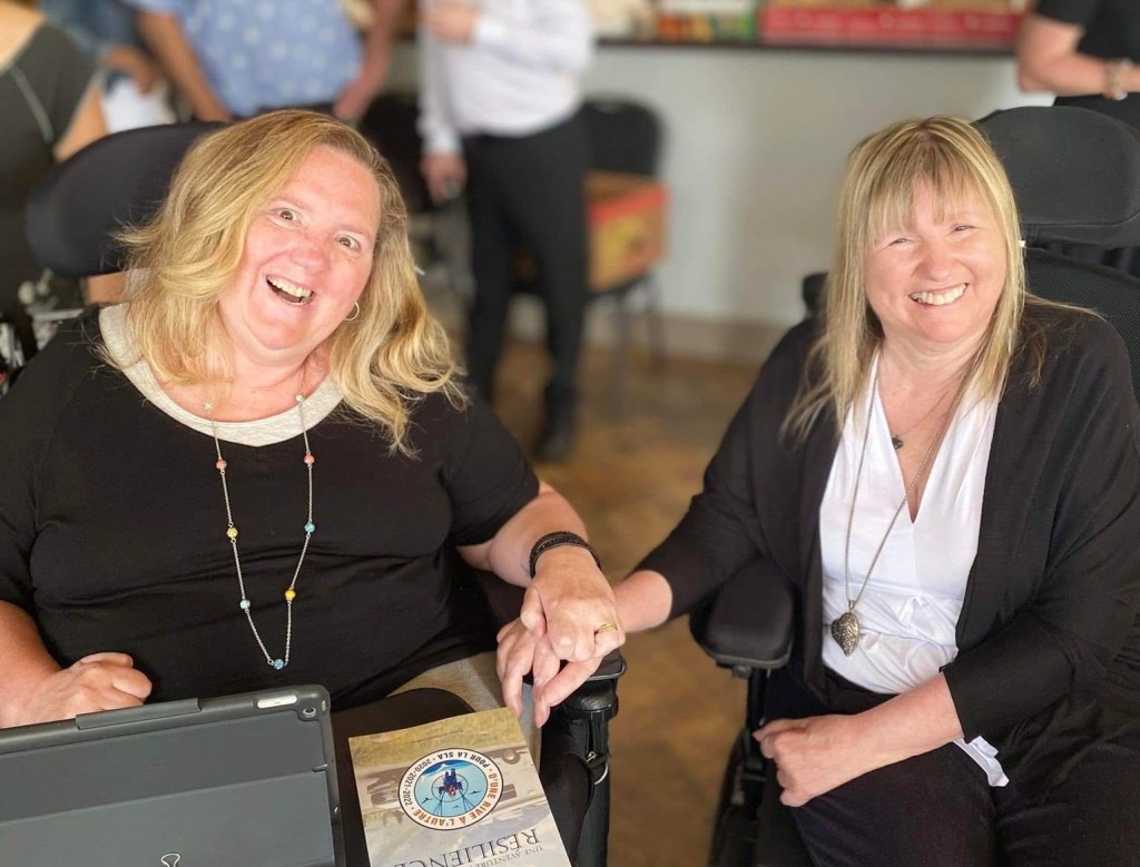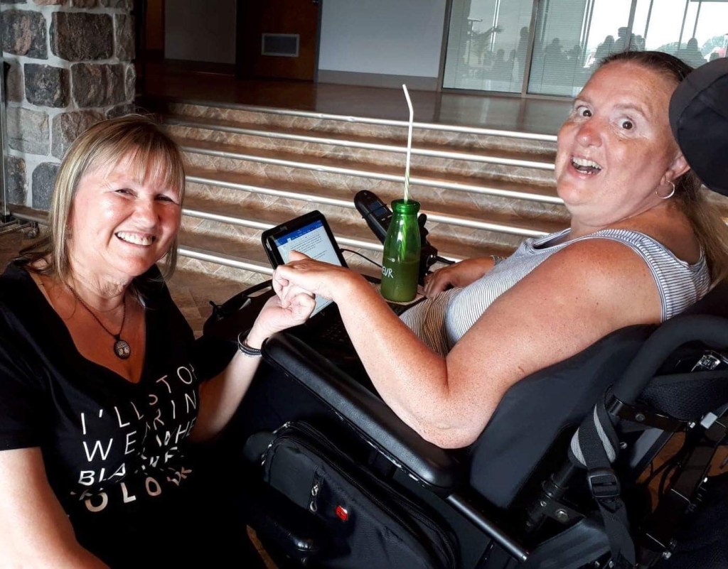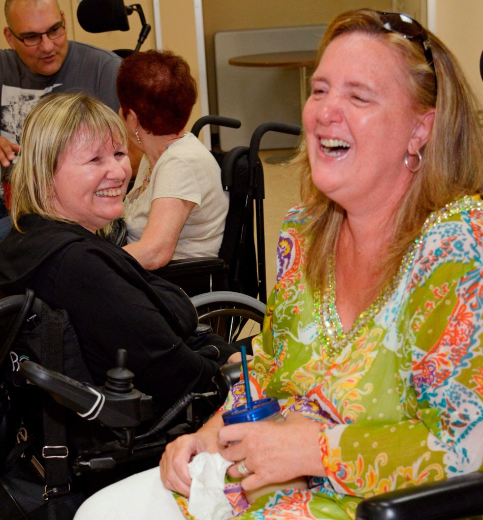 Ginette et moi rions beaucoup ensemble. La SLA amène ce qu’on appelle la labilité émotive. Pour faire simple, « lorsqu’on rit, on finit pu de rire, et lorsqu’on pleure, on arrête pu! ». Avec Ginette, un seul regard peut déclencher des fous rires interminables. Si bien, que lors de réunions, les intervenants évitent de nous asseoir côte à côte ou l’une en face de l’autre. Je me rappelle une session d’initiation à la méditation qui s’est transformée en séance de thérapie par le rire tellement Ginette et moi étions indisciplinées….lol.